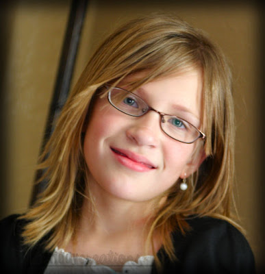 Unfortunately, I did not get an after picture because her curls were gone by the time I picked her up from school. But I do have a cute "modern" day pic of Mollee (sporting her new 'do). Doesn't she look sassy and way older than 8?
